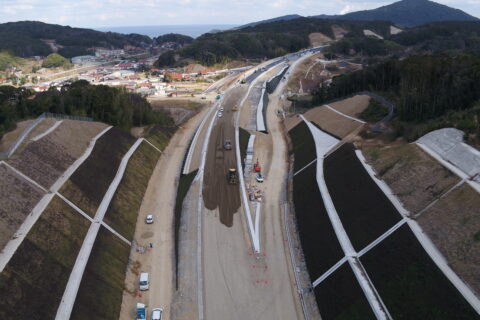 三隅益田道路土田地区改良第4工事の事例。空撮写真の剛性、解析を行いました。
